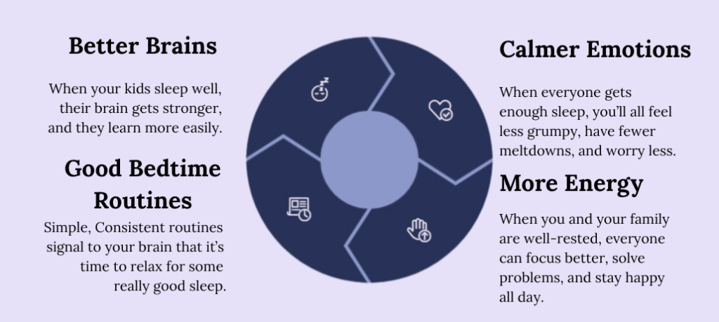 Sleep isn’t just about resting—it’s when your brain gets busy filing away memories, fixing up your body, and making sense of feelings. Experts like those at ParentingScience.com (2025) say good sleep is key for kids’ growth, everyone’s mood, and how much parents can actually get done. But let’s be real, getting enough sleep is tough for so many families, and it can feel like a never-ending cycle of tiredness and stress.